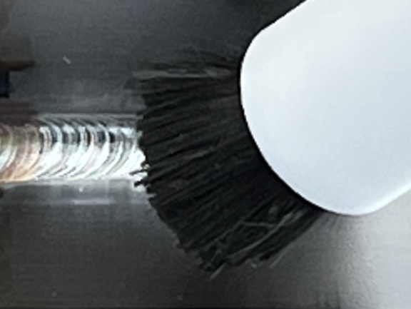 Jetzt befestigt der Mitarbeiter den mitgelieferten Kohlefaserpinsel am entsprechenden Kabel, taucht das ganze in das ebenfalls mitgelieferte Elektrolyt ein und streicht über die Schweißnaht. Die Oxidschicht wird mühelos entfernt, die unerwünschte Anlauffarbe verschwindet, es gibt keine Ränder und – das erforderte bislang einen weiteren Arbeitsgang – die Stelle wird gleichzeitig vor Korrosion geschützt (passiviert).